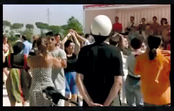 En este sentido, vamos a destacar tres secuencias. La primera es una escena que tiene que ver con la expresión de un gusto personal del director que, al mismo tiempo, permite la descripción de un rasgo de la ciudad. Moretti nos conduce con su moto hasta un baile en la calle, dando paso a través de su voz a su deseo de bailar bien. Describe algo típico de Roma, los bailes populares, pero, al mismo tiempo que hace una descripción documental, como el vecino que da un paseo, utiliza una planificación cuyo objetivo es mostrar los sentimientos que este ambiente cotidiano provoca en el director. Debemos advertir que la música, que no es otra que Visa para un sueño de Juan Luis Guerra, la cual va a igualar tanto los cambios de montaje como su llegada en moto desde la ciudad, donde ya había empezado. Es interesante como el montaje de esta secuencia muestra el deseo de Moretti, el cual pasa directamente en un corte de estar observando el baile y la orquesta, a formar parte de los músicos y cantar con ellos, como si todo ocurriera en un espacio físico (la mirada del nativo) pero construido con los ladrillos de lo que le apetecería al protagonista, de lo que pasa en su mente, volviéndose a romper esa frágil barrera de la ciudad cotidiana y la ciudad del deseo, lo que recuerda a Calvino cuando en Las ciudades Invisibles agrupa a diferentes urbes inventadas bajo el nombre de “Las ciudades y el deseo”, dando importancia a la mirada sobre la ciudad, al arte o al espectáculo que contiene.