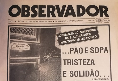 Figura 8 - Capa do jornal Observador e imagem da reportagem sobre Os Albergues Noturnos do Porto