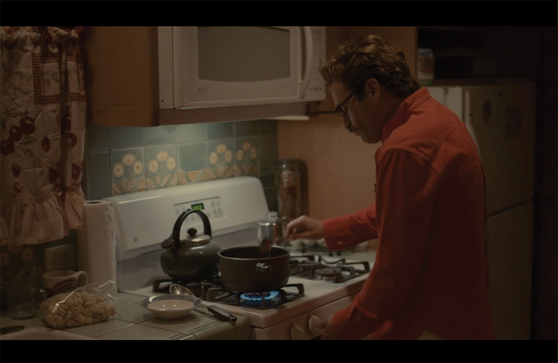 É importante, contudo, retornar à paleta de cores do filme que se mostra original e se diferencia até mesmo dos filmes de futuro atemporal aqui relacionados. Prioriza-se em Uma história de amor cores solares e terrosas 16, mas sempre através de tons pastéis. Essa paleta junto aos ambientes organizados criam uma atmosfera imaculada, porém quente e humanizada, onde os tons azulados e o metálico-máquina pouco aparecem. A presença dessas cores evoca a natureza e se opõe ao conceito frio, metálico e sem vida dos filmes mais tradicionais de ficção científica. A importância do orgânico e da natureza é atípica aos filmes do gênero em questão, mas presentes em Uma história de amor, que busca humanizar os ambientes e trazer o futuro para a contemporaneidade. Isso pode ser visualizado, por exemplo, nas cenas que acontecem na praia, no elevador do prédio em que Theodore mora, onde se projetam silhuetas de galhos e árvores, na cabana em meio à natureza para onde Theodore viaja em companhia da Samantha.