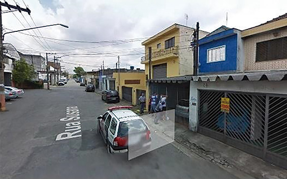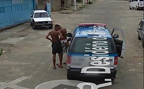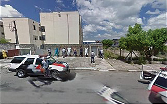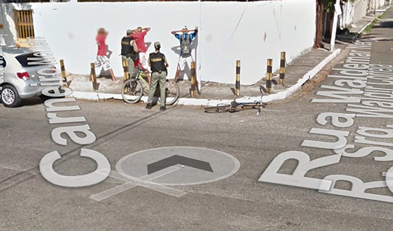 Já em Nunca é noite no mapa, 2016, de Ernesto de Carvalho, o próprio cineasta se encontra dentro do mapa-olho e é ele que vai questionar, de forma ensaística através de uma narração em primeira pessoa, a ‘imparcialidade’ da lei, com demonstrações de operações policiais no meio da rua, numa sequência de quatro flagrantes congelados no mapa e mostrados nas figuras 14 a 17.