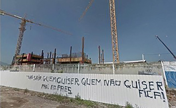 O realizador mostra também o processo que se deu nas múltiplas remoções que ocorreram por ocasião da Olimpíada em uma montagem vertical eisensteiniana, em que apresenta uma sequência, em que aparece, primeiro, uma frase em um muro ‘vai sair quem quiser, quem não quiser fica’, assinado pelo então prefeito da cidade (figura 25), depois, uma bilheteria e em seguida, pessoas, em condição de moradores de rua, dormindo na calçada (Figura 26).