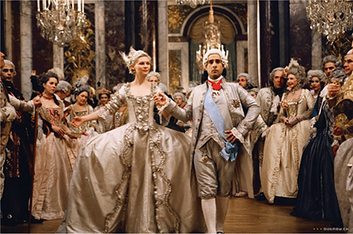 Indeed, the first dance scene in Marie Antoinette, choreographed for a couple, is intended to represent a royal ball, part of the program of the marriage celebrations of the future king Louis XVI and Queen Marie Antoinette. Most probably the bride and groom’s dance shown would have been the opening dance of the ball—the ceremonies are in their honour and the music we hear is a minuet (the 1st minuet of Les Indes Galantes by Jean-Philippe Rameau), which, together with the courante, were the usual opening dances of the ball. However, the film does not allow this scene to unfold any further, that is, it does not follow the ball.