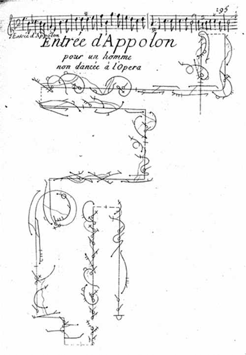 9 At the end of the seventeenth century, a system of dance notation was commissioned by Louis XIV, elaborated by Pierre Beauchamps, and set down in a book by Raoul-Auger Feuillet (Chorégraphie ou l’art de décrire la danse par caractères, figures et signes démonstratifs, Paris, 1701), dance masters at the French court, that still today gives insight into many of the choreographies of social and theatrical dances. The notation system, currently known as the Beauchamps-Feuillet system, records the steps of the various dancers, the figures they perform in space, and the relationship of these choreographic elements to music.