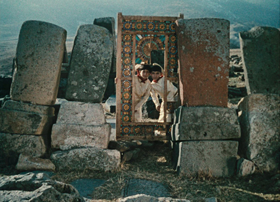 It is hardly possible to discuss Soviet Armenian filmmaker Sergei Parajanov’s The Colour of Pomegranates («Նռան Գույնը», 1969) outside the cultural context. The film follows the Armenian ashugh (troubadour poet) Sayat-Nova, revealing his life visually and poetically. Through a chaptered narrative (Childhood, Youth, Prince’s Court, The Monastery, The Dream, Old Age, The Angel of Death and Death), Parajanov presents multi-faceted pieces of contemporary life and takes the viewer into the character’s desires and dreams. The visual narrative is accompanied by music, sound and singing, but there is little dialogue in the film.