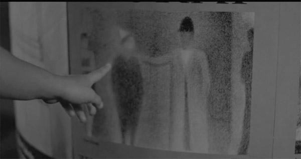 Intencionalmente na cena seguinte, os personagens caminham e observam um cartaz de divulgação de uma exibição de Georges Seurat. Céline analisa as imagens do estilo impressionista pontilhista de Seurat. Nestas obras, o Seurat define as formas e sombras através da expressão de um conjunto de pontos, o que evidencia a abstração impressionista da linha e dos planos. Celine observa as figuras humanas de Seurat e afirma: “I love the way the people seem to be dissolving int the background” (Fig. 4). Ou seja, simbolicamente, os pontos definidores das formas dissipam-se, tal como nas palavras da Cartomante.