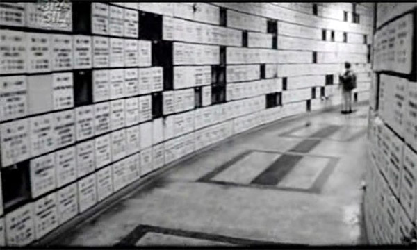 Partimos em nova caminhada. A fotografia transita do macro ao micro em composições de extrema delicadeza, ao justapor em cenas sequenciais, o alçado do edifício com suas esquadrias regulares (Fig. 16), as caixas de correio do edifício (Fig. 17) e mais adiante as sepulturas do cemitério da catedral (Fig. 18). Este recurso que será utilizado em diversas ocasiões, numa brincadeira com geometrias similares em escalas distintas.