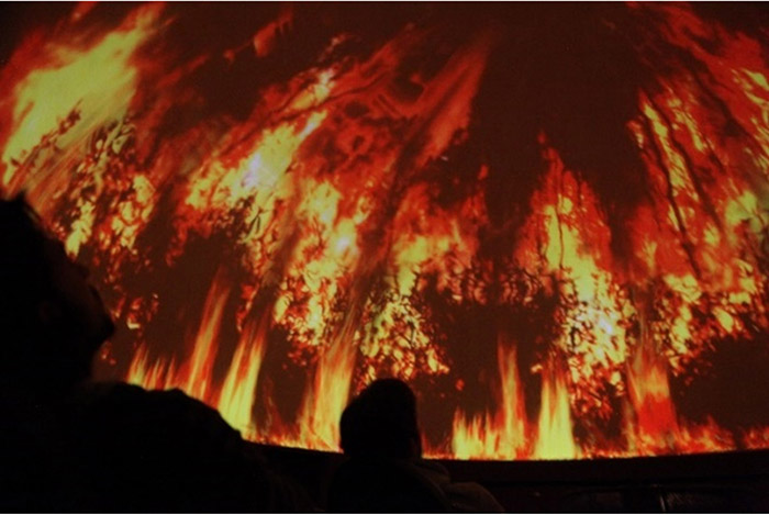 Da parceria do LabInter/UFSM com o CEIART/UNTREF, e Planetário Galileu Galilei7 (Buenos Aires), surgiu o embasamento para mediar experiências com as obras audiovisuais exibidas no Planetário da UFSM8 (Santa Maria), como a exibição EFEMERA Imagem. Tais experiências cada vez mais são presenciadas no interior de cúpulas de arquiteturas imersivas, como planetários.