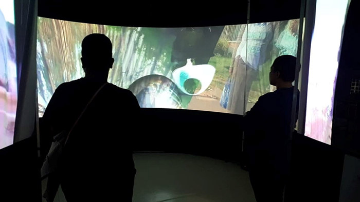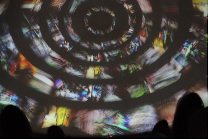 A sensação sinestésica do público presente, imerso nas imagens projetadas na cúpula sobre suas cabeças, amplia os processos comunicacionais entre corpos e tecnologias. Imerso nestas obras, percebemos seus fluxos informacionais, sem dentro ou fora, mas habitável em imagens e sons. Logo, podemos refletir sobre as relações que surgem deste encontro entre mídias, meios e público.