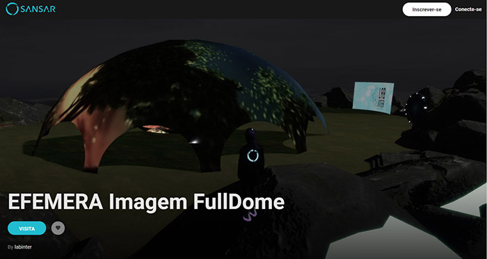 Figura 12 – EFEMERA Imagem – Exibição AudioVisual FullDome em Realidade Virtual (2021). Plataforma online Sansar. Acesso em: https://atlas.sansar.com/experiences/labinter-4345/efemera. Fonte: LabInter.