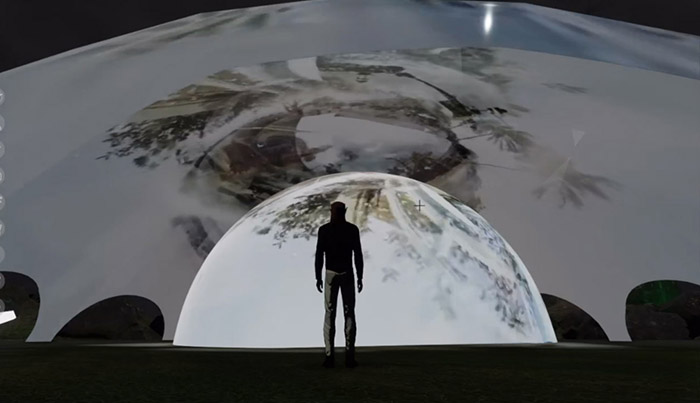 Figura 14 – ContraMonumentos. Vista interna das cúpulas da mostra EFEMERA Imagem - Exibição AudioVisual FullDome em Realidade Virtual (2021). Plataforma online Sansar. Fonte: LabInter.