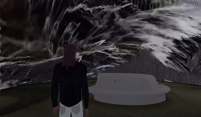 Figura 19 – MonumentosVirtuais. Registro de sua exibição no Campus Open Mapping em Realidade Virtual V.3 (2021). Na plataforma online Sansar. Fonte: LabInter.