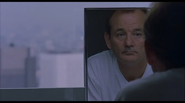 A melancolia de Bob parece ter se estabelecido. Como se anos deste mesmo processo (sem ficar e sem sair), fossem anestesiando a personagem, entediando de uma forma que Bob parece ter se esquecido como se dá sentido à vida. Ele lembra da época em que juntos, ele e sua esposa “riam o tempo todo” (como diz), e depois dos filhos e de suas frequentes ausências, tudo mudou (“ela só pensa nos filhos” – diz com semblante triste, como se tivesse sido abandonado, e ido para um lugar do qual não tem consciência... ele sabe que está, mas não consegue identificar ou definir). Sua anedonia é explicitamente esboçada em sua expressão facial marcante e constante. Seu silêncio, grita.