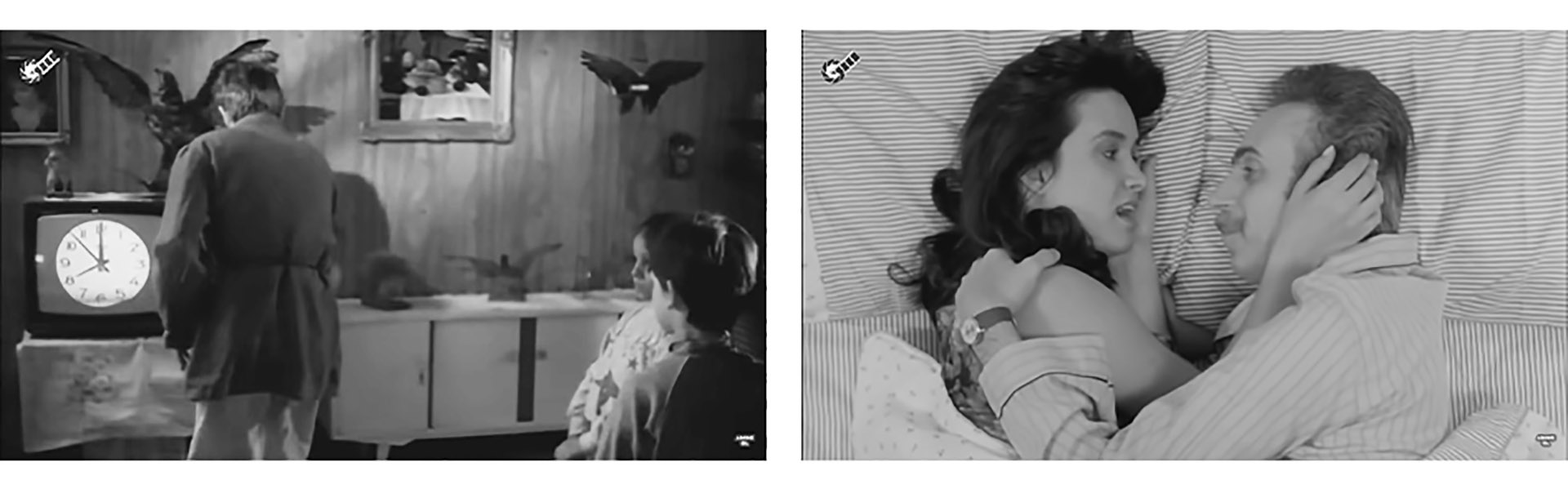 Image 15 – An example of the position of television in the narrative (left) and a scene from the commercial film.