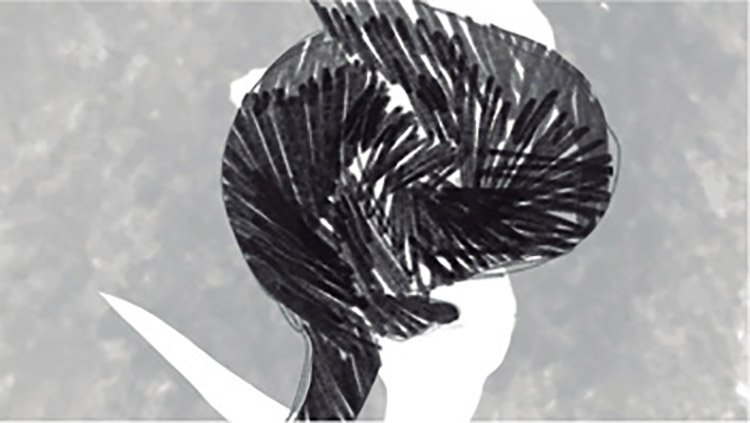 Hand-drawn animation can be quite laborious. Tasked with completing thirteen minutes of animation in ten months was a multi-person job and I also needed help (Above the Deluge was approximately 3,700 drawings and In the Fray was 5,700 drawings). To assist me, local artists and former students of the University of Saskatchewan were hired; including lead drawer Shelby Lund (MFA), followed by Lucy Zhou (BSc) and Nicole Leroy (MFA). Instead of traditional rotoscoping method (drawing on and scanning multiple pieces of paper) used by Patterson and Reckinger, the scenes were drawn digitally using Photoshop and a Wacom Cintiq Pro, a relatively new technology allowing artists to draw directly on the screen. For video editing the stock video footage, I learned how to use Premiere Pro and After Effects. This was primarily done prior to drawing frames. Not being synesthete themselves, my assistants did not “see” the music in the same way. This meant I had to be thoughtful about how to communicate exactly how to draw the imagery (to synthesize with the sound). Borrowing from the visual artist Sol de Witt, I created artist instructions for the assistants to carry out. These were paired with example drawing frames for the beginning of each scene. As a result, the drawings were consistent, efficiently made, and synchronized with the sound. On occasion, I gave ‘carte blanche’ to their drawing approach but then quickly reverted to strict instructions because I observed that the scene resulted in ‘noisy’ visuals (less in sync with the sound). As the lead animator, Shelby Lund had more opportunity to experiment, but this was discussed with me prior to implementation.
