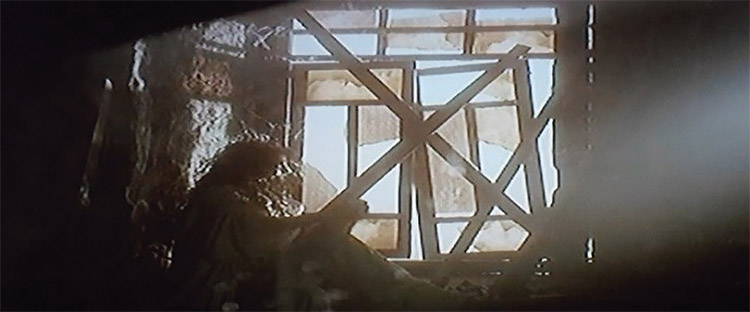 Os cenários do casarão de Aragão e Arlinda, da Igreja e do cemitério da fictícia Recife foram selecionados para o estudo semiótico em virtude desses espaços se apresentarem como espaços assombrados pela presença de espíritos, de mortos-vivos ou de fenômenos sobrenaturais. Começamos nosso estudo pela figura 8, cena que mostra o cenário do sotão deteriorado, com o telhado faltando telhas e repleto de móveis antigos.