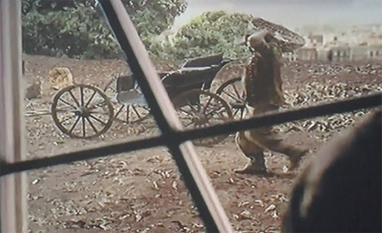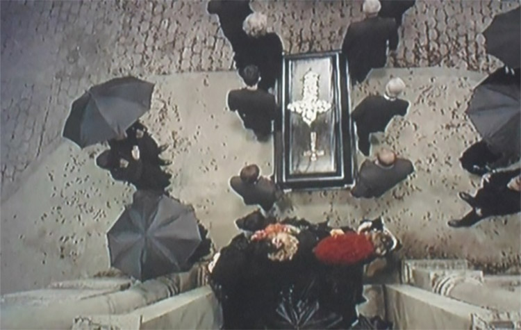 Nas figuras selecionadas com o enquadramento plongée, as imagens não foram fruto da imaginação de nenhum personagem. A câmera assume o papel de um narrador ao nos mostrar do alto a cena em que o caixão do Padre Lauro sai no cortejo funebre até o cemitério.