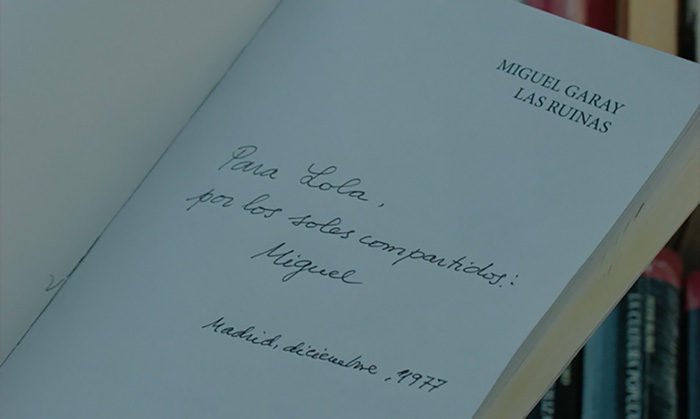 O último encontro de Garay acontece no seguimento da ida a uma feira do livro. Garay procura por Caligrafía de los sueños, de Juan Marsé, mas descobre um exemplar do seu romance Las Ruínas, que na época lhe granjeou um prémio literário. Garay pega no livro, perdido entre tantos outros, como se este o tivesse convocado, e reconhece-se, na fotografia da contracapa, com um certo grau de estranheza. Depois de folhear o livro, Garay encontra, na folha de guarda, uma dedicatória escrita por si: “A Lola, por todos los soles compartidos” (figura 2).