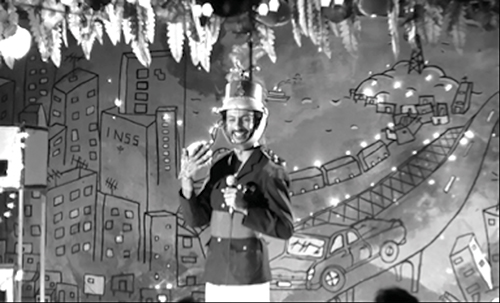 O filme termina com a exibição dos filmes do professor Joubert (Sílvio Restiffe), personagem inspirado no cineasta Jomard Muniz de Britto8. Ao ser questionado, por uma repórter, sobre o filme que vai exibir, Ficção e Filosofia, Joubert responde: “O mais importante não é o que as pessoas vão ver, mas o que elas deixarão de ver”.
