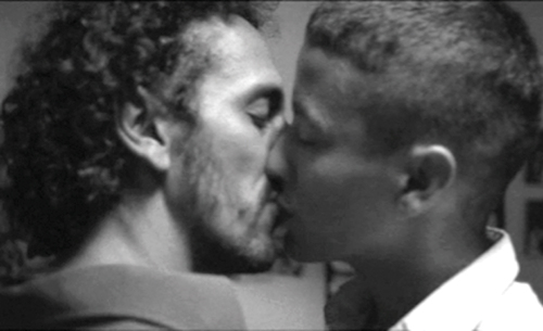 O plano-sequência tem início na radiola onde Clécio põe um disco. A música, A Noite do Meu Bem, interpretada por Dolores Duran, envolve o ambiente. Fininha o observa pelas frestas da janela, caminha até a sala. Um diálogo sobre os nomes dos dois se estabelece. Clécio, sempre num tom sensual provocativo, convida Fininha para dançar. Trocam algumas palavras no entrelace dos corpos envolvidos pelo movimento. Clécio se apossando pouco a pouco do corpo de Fininha. Fininha demonstra curiosidade. A partir dali, percebemos que o encontro dos corpos já foi comungado. Clécio pergunta a Fininha: Tu já beijou um homem? Fininha olha para os lábios de Clécio e o beija. Tatuagem é corpo, cor, música e afeto.