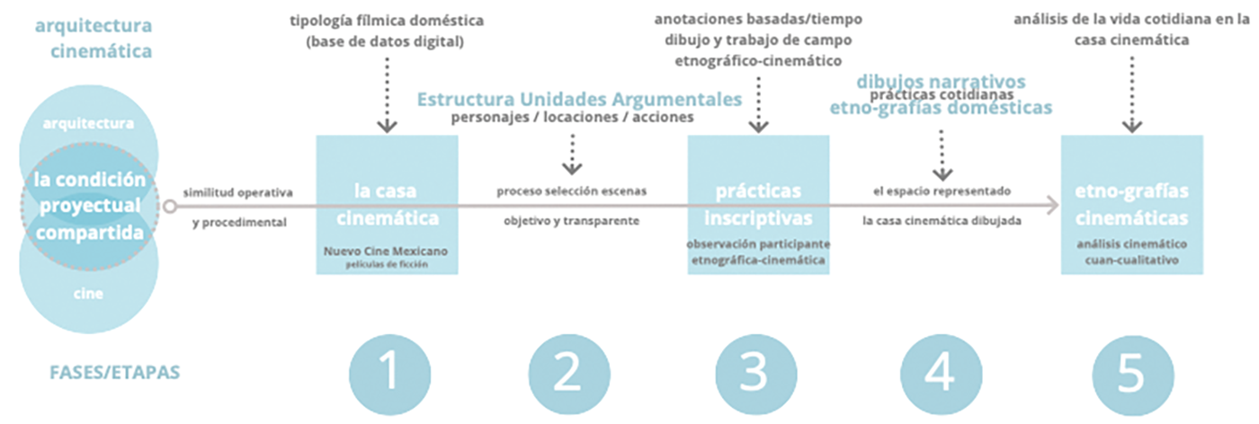 Se deberá establecer una aproximación a la evolución de los mencionados conceptos, que permitan contrastar esos escenarios de cotidianidad y domesticidad en el cine en sus diversos contextos. Así mismo, se diseñan las herramientas de análisis transdisciplinares de la vida cotidiana y la domesticidad en la arquitectura y sus correspondientes herramientas de análisis fílmico; todo lo anterior para aplicarlo en el cine-lab/doméstico en los casos de estudio del cine mexicano actual propuestos. Finalmente, esperamos obtener datos o indicadores post-ocupación del espacio fílmico y analizarlos a través de una adecuada minería, a través de diagramas y dibujos arqueológicos-domésticos, para ser utilizados en procesos profesionales reflexivos, procesos de enseñanza y en investigación basada en la práctica, utilizando al cine como la interfase laboratorio de estudio de la domesticidad y la vida cotidiana.