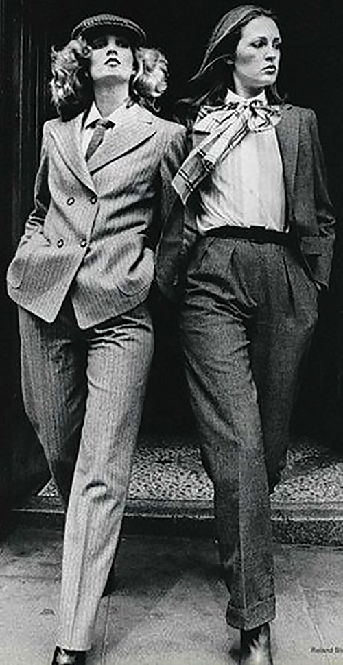 In the 1970s fashion loses some of its obsession in dividing the individuals by gender, and is more inclined towards genderless designs. For both females and males the dominant style of this period was a tight shirt and lousy trousers. In fact women of the 1970s with their backgrounds in experiencing the previous epochs in style and dressing, found a different outfit to support their ideologies and demands for liberty and equality, which showcased their look in some degrees of “cross-dressing”. To determine the term in the following, necessary is to mention the presence of a diversity of reasons for people across history to dress as the opposite gender.