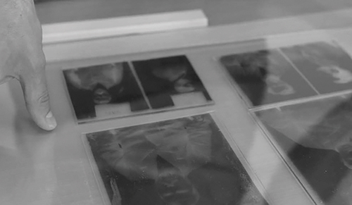 The display we have arranged presents a pretend projector – whose actual appearance is intentionally fake – coupled with a slideshow presented on a tablet’s screen. The synchronization between a flashing lamp in the projector and the slideshow produces the illusion of a live projection in which the faces of prisoners from the beginning of the 20th century appear to emerge, literally coming to life.