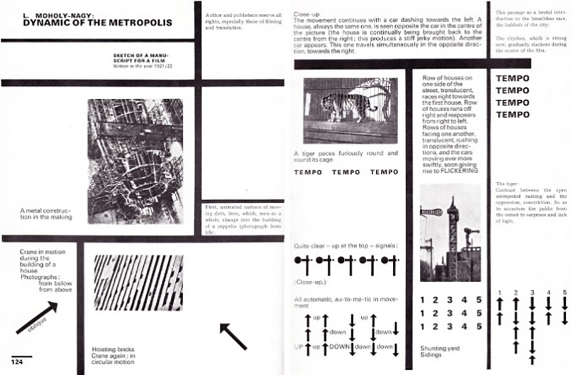 Image 3 – A sample of Laszlo Moholy-Nagy’s design arrangement of his photographs to engage the viewer with the dynamic city. Source: Bauhaus Bookshelf, 2019