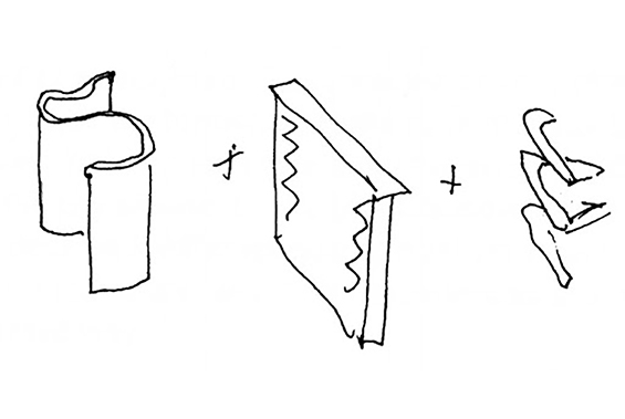 Image 4 – Tschumi’s sketch for the Museum of Contemporary Art in Sao Paolo (Top) and his digitalized product of the building (Bottom). By displaying them together, Tschumi insists on the inorganic value of the sketch, one that puts concern for space in its creation. Source: Bernard Tschumi Architects, 2001