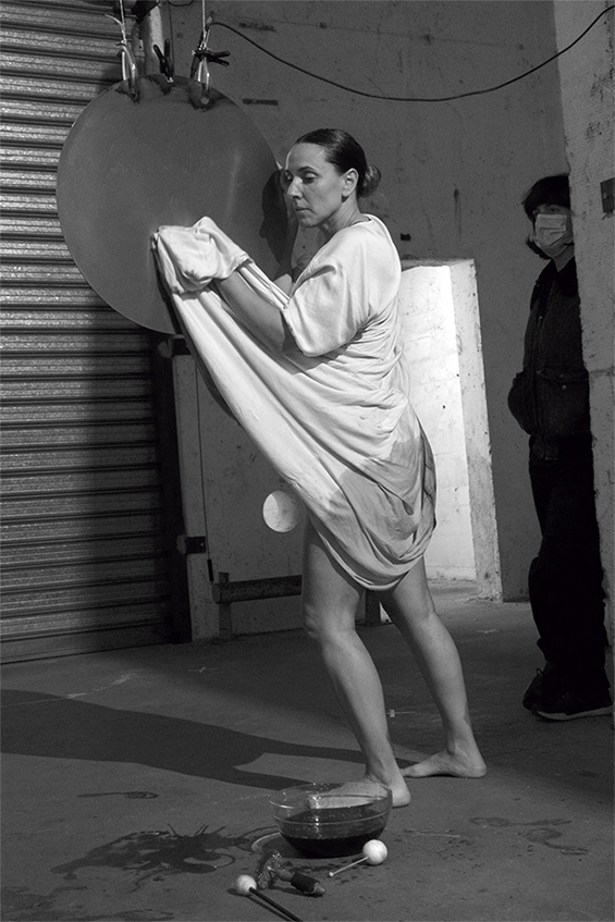Figuras 26 - Registo fotográfico da performance instalativa multimédia “Arquetipo(grafia) obscura do feminino”, (25/10/2020), Lisboa. (Fonte: Stratos Ntontsis).