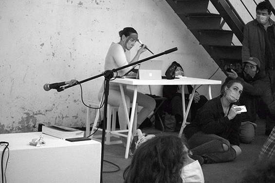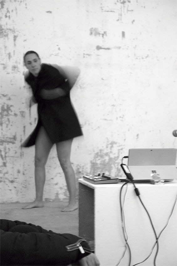 É também a partir deste limbo, que a ação dual da performance discorre e se desenvolve: o primeiro momento, foca-se na exploração sonora, apresentando fricções associadas ao gesto das lides domésticas, atuando como processo de iniciação; um segundo, centrado na plasticidade da imagem, ou seja, na articulação entre as ações de duas performers (in loco e no espaço virtual), com objetos reais e efeitos digitais gerados em tempo real e projetados.