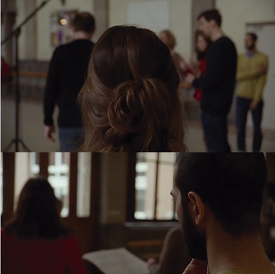 La manera de casar estos espacios del ensayo vaciados junto con una banda de sonido repleta de voces de artistas en su reflexión sobre su condición creativa, no nos permite concebir estos espacios desde una «falta» o «negatividad». Al contrario, los cuerpos no están ausentes en el espacio, se materializan en su voz, en su capacidad sonora. A lo largo del presente estudio se van a desplegar las diferentes maneras por las que Manon de Boer trabaja la percepción fílmica entre la imagen y el sonido para crear fricciones disonantes y uniones harmónicas. Son apuestas cinematográficas se proponen dispositivos perceptivos y reflexivos complejos.