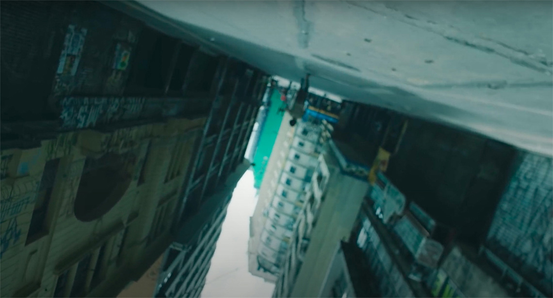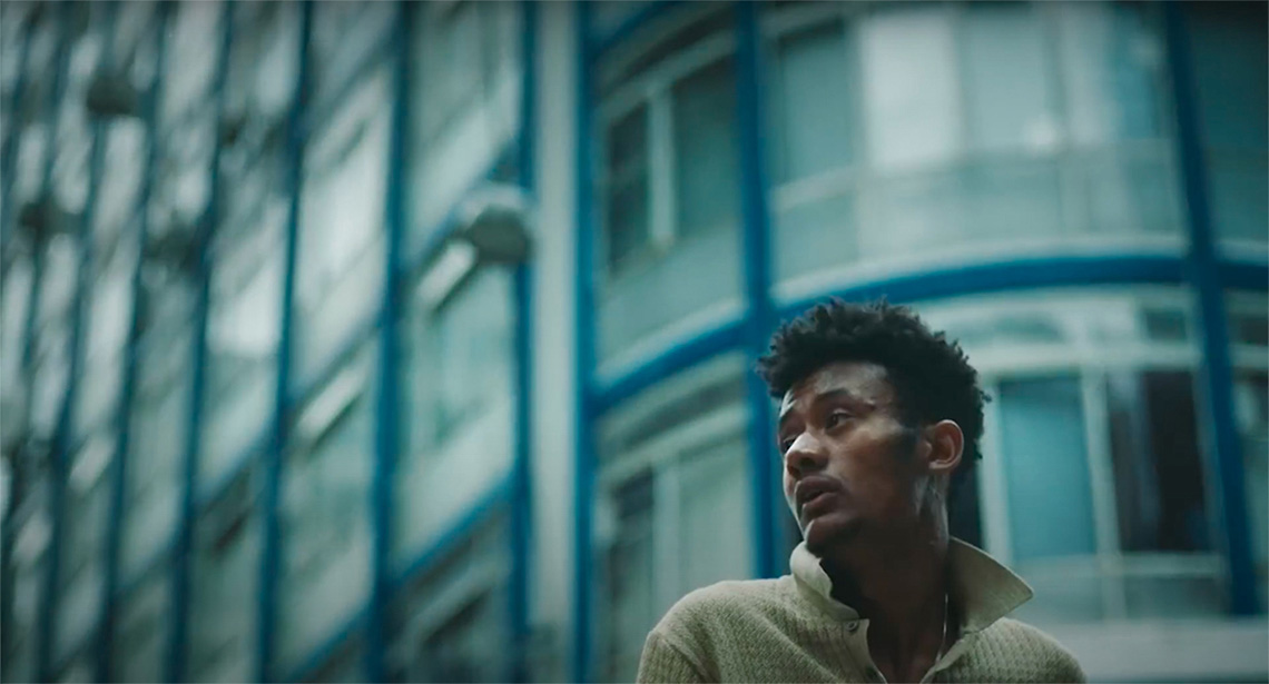 O brilho intenso e dourado destaca a pele da personagem que abre os braços para a chuva, enquanto a fonte de luz segue para o fundo na imagem marcando sua silhueta, o gesto toma todo o quadro e seguimos ouvindo a canção até o fim da estrofe. Um novo corte e somos trazidos novamente para a corrida. O rosto preocupado relembra a sensação de perigo que a cena de um homem negro correndo na rua parece evocar, é então que enxergamos literalmente a virada que o conceito da narrativa parece propor.