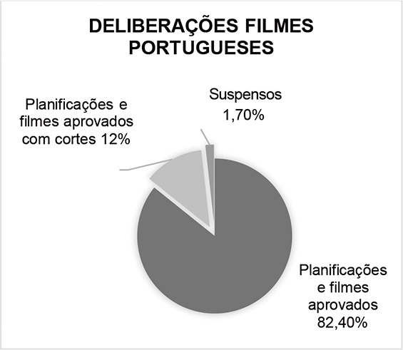 Decisão provavelmente mais relacionada com a salvaguarda da imagem da Comissão e com a preocupação de evitar contrariedades, do que com a proteção dos interesses das empresas. A esmagadora maioria dos filmes distribuídos foram películas estrangeiras. Apenas 3,3% dos filmes mencionados nas atas eram portugueses, o que representa, em números absolutos, 57 filmes. Todos os filmes portugueses foram “aprovados” ou “aprovados com cortes”, com a exceção do filme Tragédia em Timor que foi suspenso. Em 1948 criou-se o Fundo do Cinema Nacional para estimular a produção do cinema nacional, mas na verdade, foi mais uma forma de controlar os conteúdos cinematográficos. Apenas tinham acesso ao apoio filmes que obedecessem à condição de