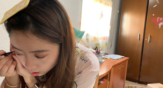 En esta obra, que ha inspirado la sección sobre el maquillaje de Yiyi, las imágenes expresan la relación del cuerpo y el género. La vieja idea que afirma que el arte debe ser bello, se vislumbra como un hechizo encerrado durante miles de años en la creación artística. Al igual que la idea de que las mujeres deben ser hermosas, también considerada como un requerimiento social. Para Yiyi, el maquillaje también es muy importante, es parte de su vida diaria.En el vídeo grabado en su habitación vemos el proceso de maquillaje, con todas sus etapas. Comprendemos la importancia que la protagonista le da, inmersa como está en una sociedad donde la belleza es un imperativo para las mujeres.
