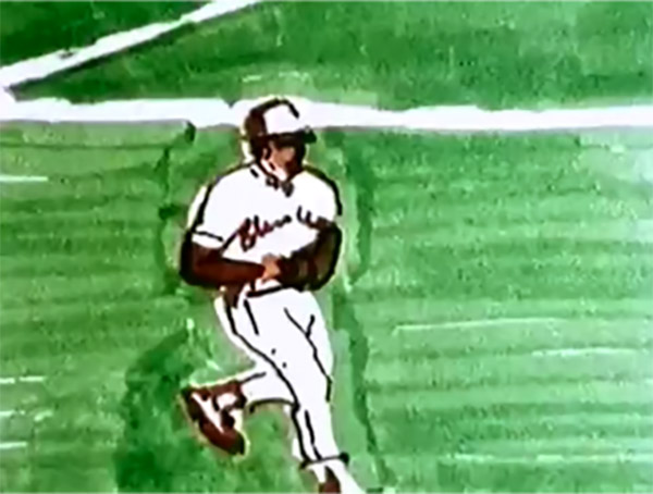 Frames 1 – From up to down: turning the realistic figure of the baseball player to simple and abstract shapes in “BANG