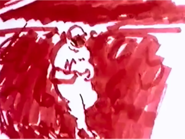 In addition, another analogous sample of the over-mentioned artistic strategy can be seen in “FUJI” (1974). In this animation, the speedy film editing merges different images such as live-action, figures, forms, colors, and lines. But, concerning repetitive images which portray a passenger’s lookout from inside and behind the window of the train, it is viable to discover the travel as the theme of this film. In a short-time plan of it, a man is shown while running. But, as he runs, the form of his body decreases from the realistic and is turned into a rotoscoped, shape-like, and linear form (Frames 2). This means exactly a visual similarity for moving from familiarity to unfamiliarity, abstraction, and alienation. Thus, about the presented examples and samples, it is feasible to suppose that the existing abstraction of the experimental animation is equivalent to alienation in the Epic Theatre.