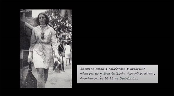 Ao longo de todo o percurso narrativo, as grafias do nome aparecem de diferentes formas, em documentos, registros, atestados, laudos, lista de exilados, na inscrição fílmica sob uma fotografia nomeando as mulheres, presas políticas, nos cartazes de procurados da repressão. O fluxo destas formas de nomear expõe a palavra articulada graficamente enquanto testemunho histórico, trazendo outras camadas temporais e imagéticas para a visualidade, reconfigurando a experiência histórica do espectador ao construir as identidades narrativas através destes elementos gráficos e dos rastros por eles mobilizados.