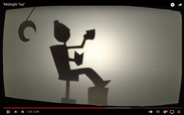 Tomaremos agora em linha de conta a analogia entre os processos do corte e do recorte por forma a perceber, que no modelo adotado existe uma plasticidade, que se enquadra nos exercícios de prototipagem rápida. Esta prática é aqui percetível através das figuras e configurações executadas em cartolina. Em Midnight Tea a dimensão estética é assumida através da combinação de elementos simples que servem um propósito, o da comunicação. Estando previsto que este pequeno vídeo pretende comunicar a atmosfera de um espaço, que remete para uma casa de chá, que tem além do respetivo serviço relativo à restauração e similares, a capacidade de oferecer aos seus clientes momentos de fruição, quer ao nível da oferta de espaço dedicado à leitura de livros, como dá a possibilidade dos seus clientes poderem saborear música jazz ao vivo. Do poema “O Corvo”, os autores extraíram a dimensão da sombra e sobre a mesma desenvolveram um conjunto de possibilidades estético/formais. O minimalismo associado à realização do projeto corresponde a uma estratégia que visa confrontar o observador, com um espaço de construção subjetivo, dando-lhe asas para convocar as referências do seu próprio imaginário (Figura 4). Em termos estético e formais, o projeto vive muito da dimensão “da utilização artística da luz e da ausência de cores” (Arnheim 1989: 58) e da relação figura, movimento e fundo. Um fundo onde a presença do foco de luz é assumida como elemento integrante e não como um constrangimento técnico. A envolvência e maturidade da voz da narradora cruza com a própria animação, conferindo-lhe uma atmosfera única. É, ainda de referir a analogia entre estas técnicas “de corte e recorte” tanto na parte analógica como na parte do digital. A solução aqui explorada oferece um exercício de acolhimento sobre o já feito, o já realizado, o já sentido, numa busca operatória capaz de se constituir como exercício preparatório para a descodificação e aplicação de diferentes formas de linguagem, ao serviço de um objetivo, designadamente, a produção de um conteúdo de comunicação.