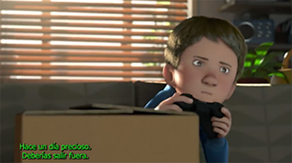 En el vídeo, podemos ver a un niño sentado en el sofá jugando a la consola y en un ambiente muy oscuro, donde las cortinas no dejan pasar la luz. La madre llega a casa con una caja y, dentro de ella, lleva un perrito. Aunque al principio el niño muestra felicidad, pronto se da cuenta de que le falta una pata y lo ignora con desprecio. Sin embargo, el cachorro no se rinde y le muestra que solo quiere jugar con la pelota, cayéndose una y otra vez. A lo largo del cortometraje, vemos cómo se levanta tras cada caída demostrando sus ganas de superación y su positivismo, que es lo que hace que el niño salga de su zona de confort para jugar con él.