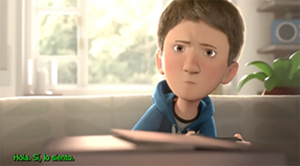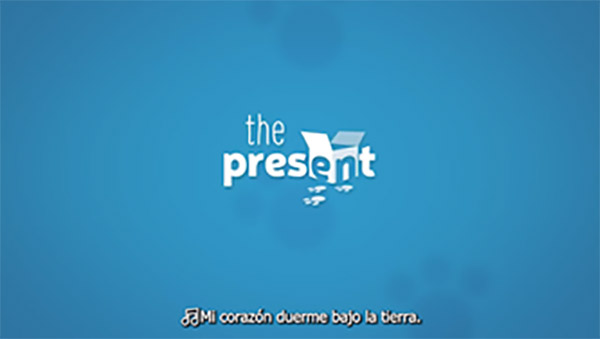 A diferencia de lo que se estipula en la norma UNE 153010, en la subtitulación creativa que hemos propuesto para el cortometraje de The Present, el subtítulo o el texto que aparece en pantalla se ha colocado cerca de la boca de cada personaje, y no centrado en la parte inferior. De esta manera, el espectador podrá identificarlo con más rapidez y, además, no perderá parte de la trama ni detalles de la imagen, como puede suceder cuando se dirige la vista a la parte inferior para leer el subtítulo convencional. Aun así, debemos tener en cuenta que la posición puede variar en aquellos casos en los que no contamine la imagen ni obstaculice ningún elemento que sea importante para la trama.