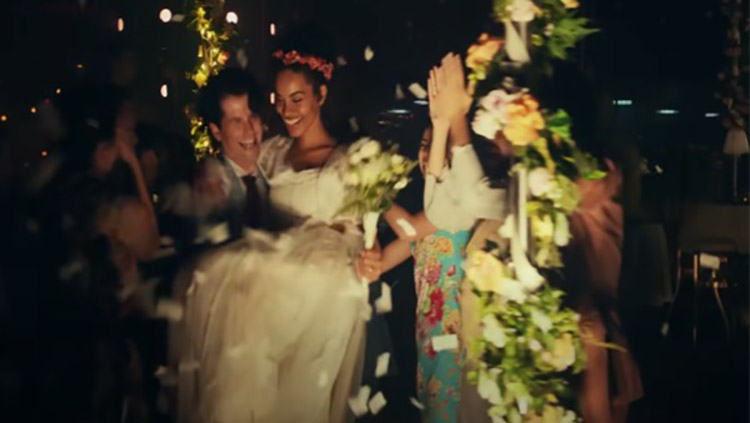 Tendo em consideração que o carrossel causa uma certa estranheza, como lugar de celebração do casamento, por outro lado prende o espetador, pelas razões que passaremos a expor. Consegue-se estabelecer uma equivalência entre duas coisas ou acontecimentos que, à primeira vista, parecem não ter relação (Costa 2002, 60). Porém, esta figura de estilo manifesta-se relevante. Primeiramente, o lugar inusitado para a união solene capta a atenção do espetador, apresentando uma situação familiar, num espaço popular como uma feira. No entanto, o guarda-roupa caracteriza de forma imediata o acontecimento, pelo vestido por exemplo. O corte clássico e a cor que obedecem ao dress code reconhecido pelo espetador.
