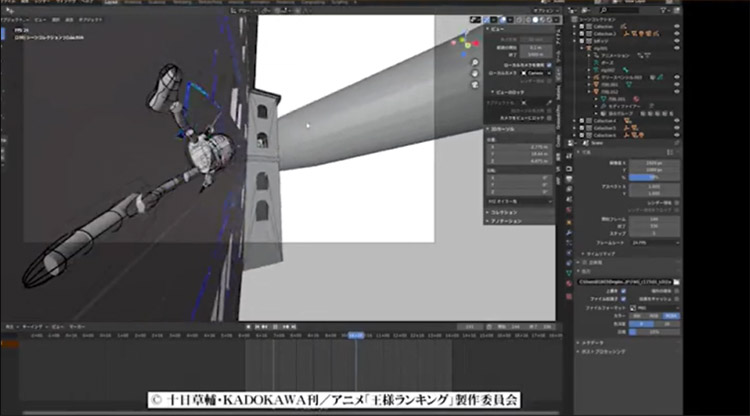 O animador e diretor Shota Goshozono, conhecido por sua produção em “Ousama Ranking” (WIT STUDIO, 2021), também utiliza esta técnica no anime e implementa o uso da ferramenta “grease pencil”, disponível no programa de animação 3D “Blender”, por cima do modelo 3D do personagem. Dessa forma, é perceptível como a ampla disponibilidade de ferramentas possibilita uma maior liberdade no modo como um animador prepara uma cena.