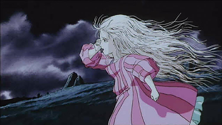 Já no caso das referências de animes, foram escolhidos dois. O primeiro escolhido foi o anime “Shoujo Kakumei Utena” (J.C.STAFF, 1997), do qual a personagem “Anthy Himemiya” serviu como inspiração para a criação da personagem do projeto, devido a sua personalidade delicada. O segundo escolhido foi o filme em longa-metragem “Tenshin no Tamago” (STUDIO DEEN, 1985), devido ao seu tom apocalíptico, para a criação do momento de tensão da animação.