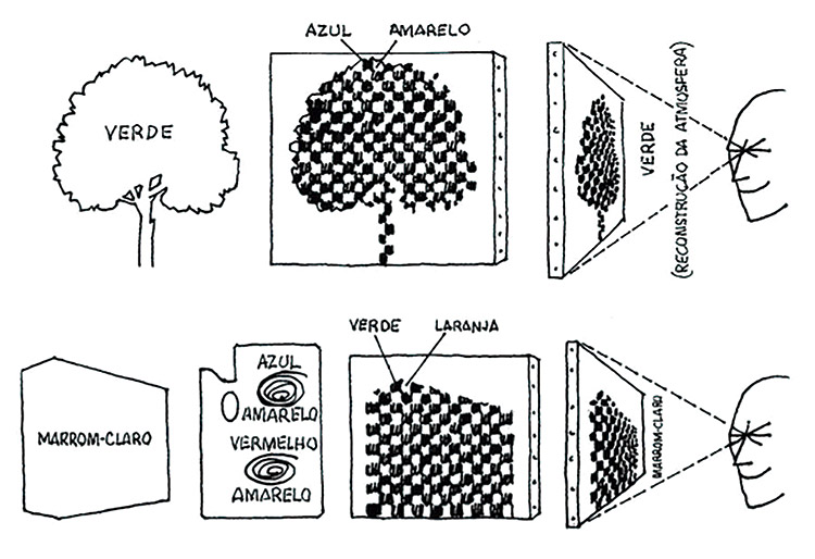 De acordo com Balzi (2009), no seu livro “O Impressionismo”, uma pintura impressionista busca dar a impressão da realidade por meio da representação da atmosfera. Para isso, o quadro é fragmentado em pinceladas pequenas e as cores são utilizadas por meio do princípio do Divisionismo, ou seja, a separação dos tons em cores puras por meio das pinceladas.