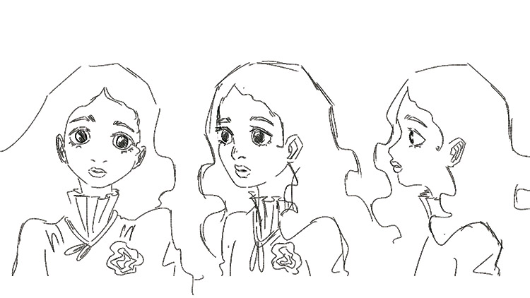 Com isso em mente, a personagem principal da animação deste projeto foi desenvolvida com proporções realistas e em um estilo próximo ao de animações japonesas, que valorizam a expressividade dos olhos. Definir esse estilo foi essencial pois a personagem não fala durante a animação e a história aborda o seu olhar sobre o mundo, então era necessário que os seus olhos fossem expressivos.