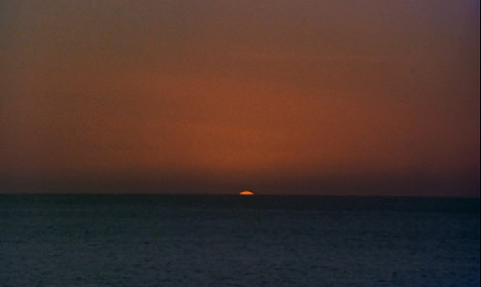 Este dilema es el que Rohmer recoge y desarrolla en prácticamente toda su filmografía, pero especialmente en sus Contes moraux. Él mismo resume las situaciones de las películas de esta serie como sigue: «Un hombre encuentra a una mujer en el momento preciso en que se ha comprometido con otra» (Rohmer 1971). En Ma nuit chez Maud (Éric Rohmer, 1969), Jean-Louis descubre a Françoise, joven de semblante angelical, en la salida de una misa. Embelesado por la fantasía de una futura boda, un día se reencuentra con un viejo amigo que le presentará a Maud, atractiva divorciada con quien mantendrá un romance. Nuevamente, el azar no fuerza una condición, sino que emplaza una situación que tiene que ver con la imperiosa —y angustiante— necesidad de decisión por parte de los personajes. Pero Rohmer, profeso a evitar situaciones conflictivas y emotivas, inserta una elipsis que parece solventar la duda del espectador: cinco años han pasado desde la inclinación de Jean-Louis por Françoise, y ahora sólo restan cinco minutos de cinta. Asumimos el dictamen del protagonista al ver a la pareja en la playa junto a su hijo. No obstante y para más regocijo, cuando la familia baja a la orilla aparece Maud. Un saludo incómodo da paso a preguntas banales sobre sus vidas actuales. Françoise, recatada por el encontronazo, toma al niño de la mano y se dirige a la arena, dejando a su marido a solas con su examante. Estos se ponen al día por educación y se despachan con sarcasmo: «Hasta dentro de cinco años», se dicen entre sonrisas. Cuando Jean-Louis vuelve con su mujer, tumbada y cortante a las palabras de su esposo, lo primero que anuncia es una especie de disclaimer, esto es, una descarga de responsabilidad, incluso de compromiso: «[Maud] Coge el barco esta noche con su marido». Ella no le mira a los ojos y juega con la arena. Él habla sin llegar a decir nada, pero prefiere la frivolidad al desastre que invoca el silencio. Ambos saben que algo permanece de aquello que sucedió tiempo atrás. Y aunque Jean-Louis parece abierto al diálogo, cuando comienza a contarle a su esposa cómo conoció a Maud algo le detiene. Irrumpe su propia voz en off: «Iba a decir que no ocurrió nada, cuando de pronto comprendí que estaba turbada, no por lo que averiguaba sobre mí, sino por lo que adivinaba que yo averiguaba sobre ella y que descubría en ese momento y sólo en ese momento. Y, por el contrario, le dije: [termina la voz en off y vuelve el diálogo entre ellos] Sí, fue mi última aventura». Ella ríe. La circunstancia le resulta cómica pero acaba siendo tajante: «Dijimos que no lo hablaríamos más». Él responde: «Sí, no tiene ninguna importancia. ¿Nos bañamos?» Son las últimas frases de la película antes de que Rohmer remate la situación con un plano final de los tres, marido, esposa e hijo, penetrando mar adentro, siendo el último plano el del horizonte oceánico, como lo será casi veinte años más tarde el de Le rayon vert [Figura 2].