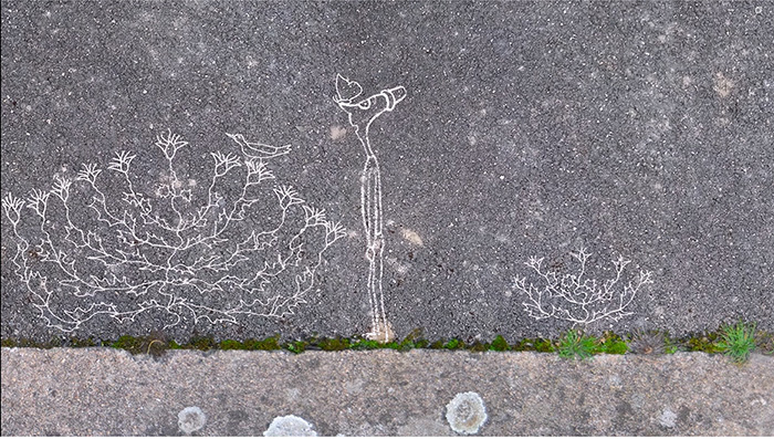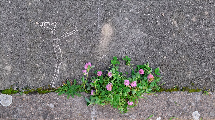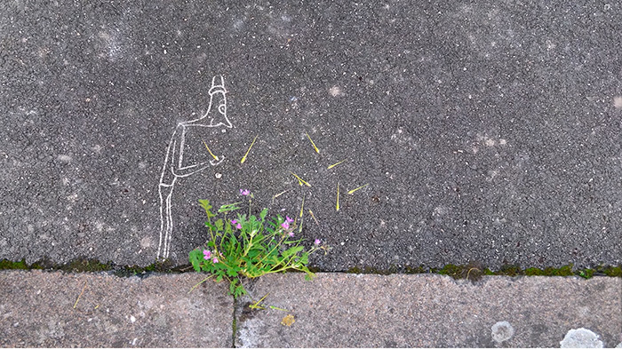 Como uma balada pedagógica de sensibilização pelo valor intrínseco da natureza e uma sugestiva descoberta da força vital, capaz de renascer mesmo perante a adversidade do solo. Como anúncio de riqueza e necessária valorização da identidade e da biodiversidade resiliente, mesmo nos mais inusitados, inesperados e estreitos espaços, que bastas vezes se crê como sendo inertes e desconexos uns dos outros. Ligação e relações entre pequenos seres vivos e o meio ambiente acentuam alinhamentos de contacto no solo ficando agora mais evidentes, e, porquanto sendo muito mais óbvios, apenas quando muito grandiosos, francamente visíveis e florescentes. Pequenas brechas no solo, como destaque de linhas e fissuras do ambiente a permitir o anúncio da presença de ecossistemas vitais que podem revelar franca resiliência. Para além de poderem acentuar a importância de preservarmos a segurança de espécies com elevada adaptabilidade, também acentuam o valor de as estudarmos e conhecermos, interagindo. Assim atendendo a um inesperado observar, a uma tradução da surpresa e beleza do que se permite constatar como vivo. Acompanhando uma mensagem que parece enunciar a necessidade de colaborarmos conjuntamente em ação e valores de atenção, conhecimento, cuidado e preservação.