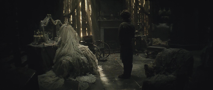 Helena Bonham Carter is this version’s Miss Havisham, building on her established persona as a gothic eccentric as depicted through her roles in the Harry Potter franchise (2001-2011), Corpse Bride (2005), and Sweeney Todd (2007). Her casting allows us to read this Miss Havisham within the archetype of the “mad woman” that she normally portrays.