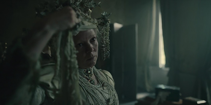 This introduction relies heavily on horror-like elements such as low-key cinematography and eerie sound design and, in doing so, reflects the overall desire to update the classic character with a more modern approach to class-struggle. Knight presents us with a revision of the Victorian Era backdrop presented by Dickens and largely focuses on how unethical certain fortunes can be. This Miss Havisham comes to represent the corrupt rich and presents a more palpable understanding of how improbable it was to move up the social ladder at the time of the novel and nowadays. This crueler, more fear-inducing depiction of Miss Havisham is then a result of not just a broken heart but generational cruelty.