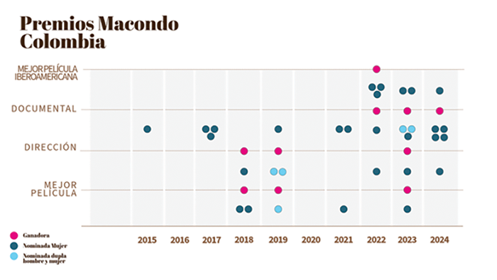 Gráfica 5 – Resultados de ganadoras y nominadas en los Premios Macondo. Elaboración propia.